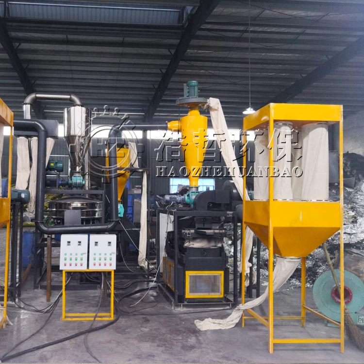 浩哲環(huán)保生產(chǎn)的鋁塑膜分離設(shè)備完全采用機(jī)械分離方法,鋁塑膜分離設(shè)備是指將鋁塑復(fù)合材料的鋁、塑兩種材質(zhì)徹底地分離為金屬和塑料的設(shè)備。完全干式物理分離,不造成二次環(huán)境污染,具有較好的社會資源效益和經(jīng)濟(jì)效益。